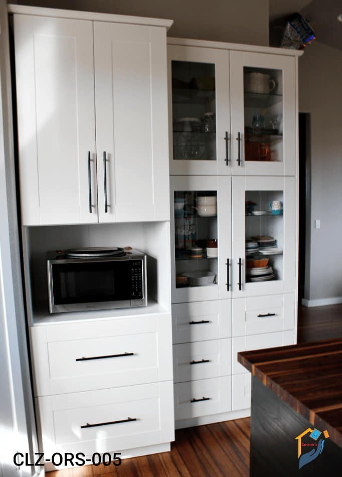 The leg is made of Mahogony wood with lacquer polish. The cabinet is made of Solid Canadian OAK Veneer MDF with lacquer finish and Clear 5 mm Glass .