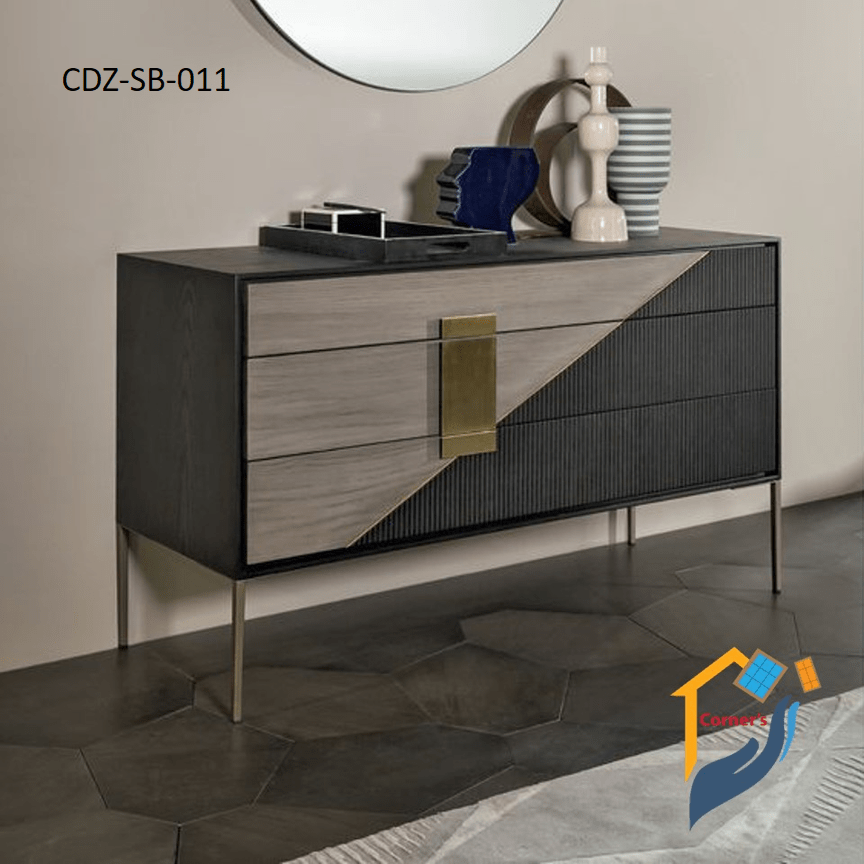 The leg and base are made of MS box with Duco paint. The cabinet is made of Canadian oak veneer MDF with lacquer finish as per picture.