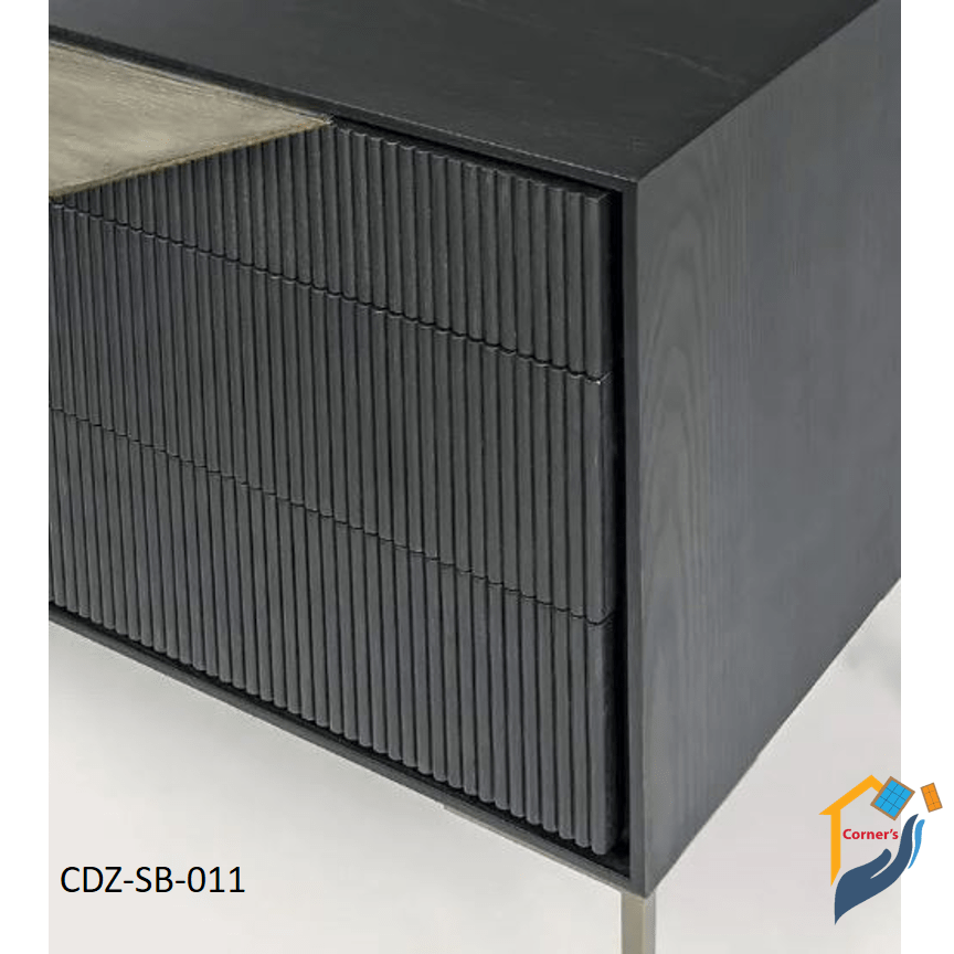 The leg and leg base are made of heat painted MS plate . The cabinet is made of Solid Canadian OAK Veneer MDF with lacquer finish and tinted 5 mm Glass (Imported) with MS frame.