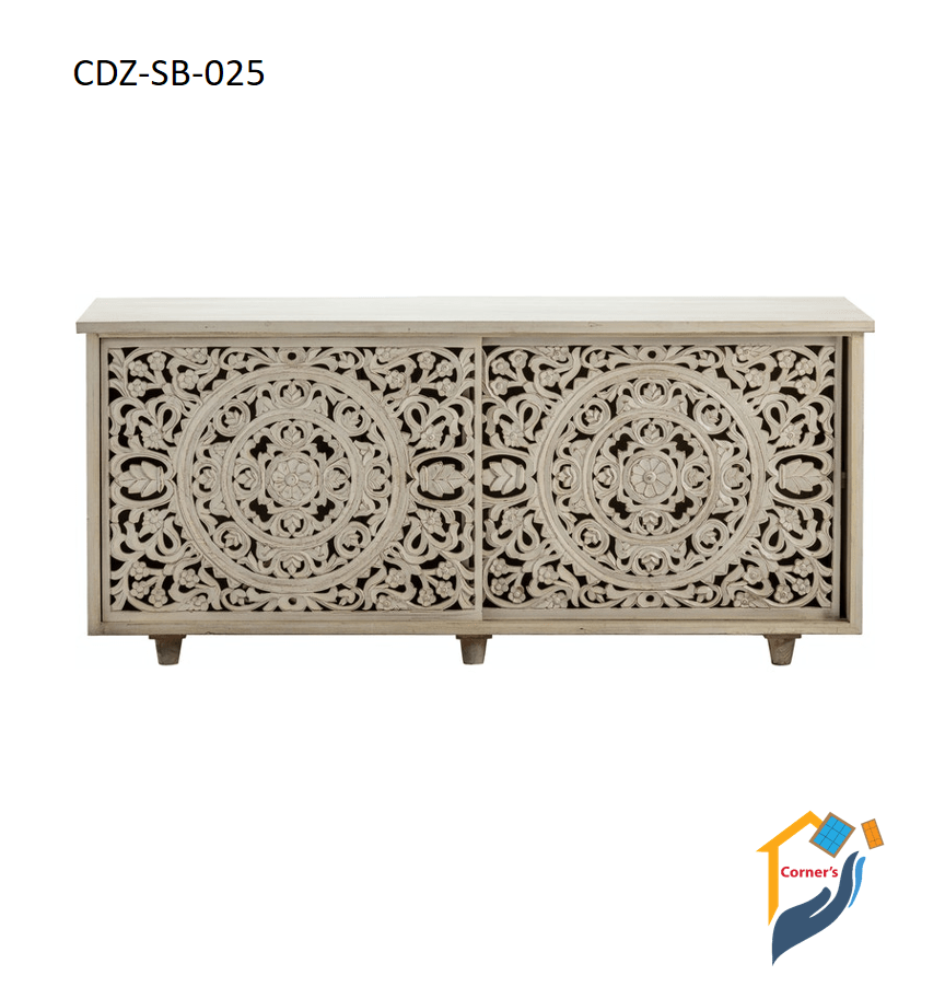The leg, base and front part are made of Mahogany wood with lacquer polish. The cabinet is made of Canadian OAK veneer MDF board with lacquer polish.