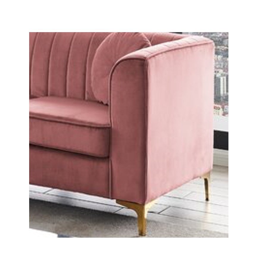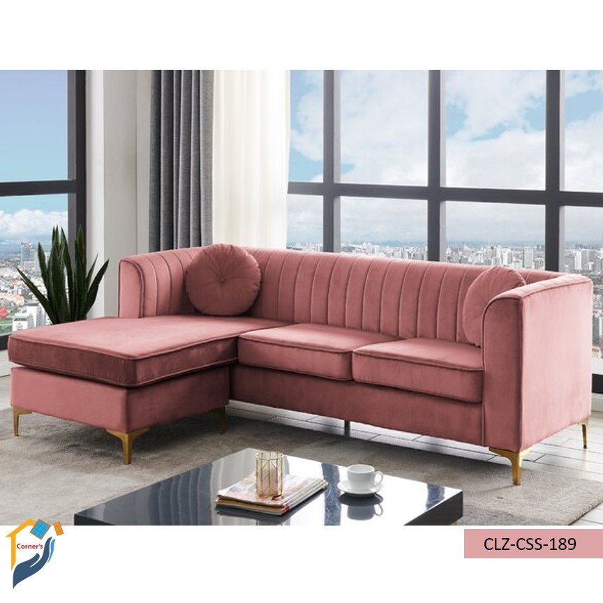 Legs are made of MS with golden duco paint. Inner frame is made of Garjan and Gamari wood. Quality rubber foam with quality thick velvet fabric upholstery of your preferred color.